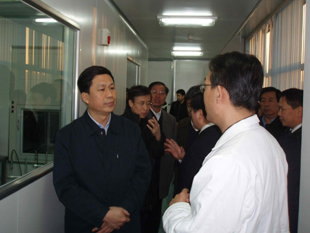 ????? 2007年11月20日,天津市委常委、濱海新區(qū)工委書記、濱海新區(qū)管委會主任茍利軍在南開大學校長饒子和、天津市科委主任李家俊、和市經(jīng)委、市科委和濱海委有關領導同志的陪同下,蒞臨國家干細胞工程技術研究中心深入視察了干細胞研究中心、臍帶間充質(zhì)干細胞庫,聽取了全國政協(xié)常委、國家干細胞工程技術研究中心主任、法國國家醫(yī)學科學院外籍院士韓忠朝教授關于國家干細胞工程技術研究中心取得的科研成果及臍帶間充質(zhì)干細胞項目產(chǎn)業(yè)化發(fā)展情況的匯報。