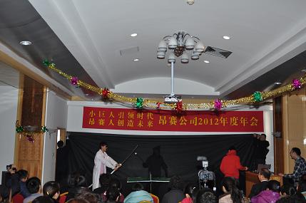 ??????? 在韓忠朝總經(jīng)理致辭之后,由公司工會精心組織的新春聯(lián)歡會隆重登場,舞蹈、歌曲、黑光劇、小品、啞劇輪番登場,所有的節(jié)目都是員工自編自演,再次展示了昂賽員工的多才多藝。節(jié)目異彩紛呈:其中財務(wù)部編排的舞蹈《鳥叔鳥妹》、多部門聯(lián)合排演的黑光劇《乒乓超人》、以及兩段不同風格的小品表演《蓋章》《超幸福》,引來掌聲連連,現(xiàn)場一片歡樂的海洋,而客服部的舞蹈《荷塘月色》、綜合部的歌曲《你是我的眼》更是體現(xiàn)了很高的藝術(shù)水平。伴隨著年會的進行每個員工臉上充滿興奮的喜悅和激動的表情,在聯(lián)歡會的最后公司領(lǐng)導(dǎo)和老同志共同合唱了一曲《我和我的祖國》將氣氛推向了頂峰。